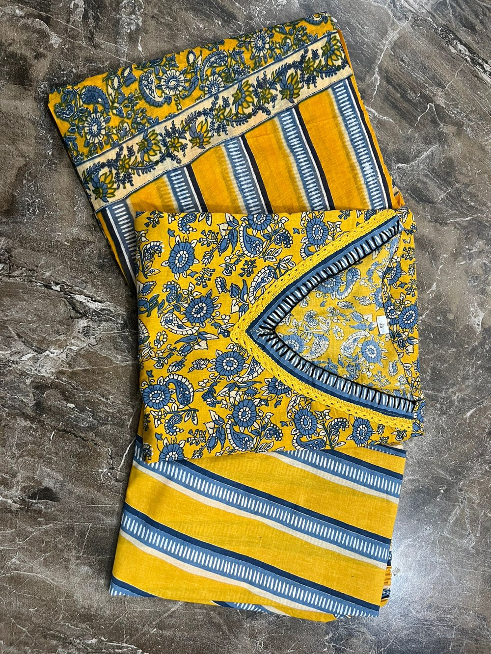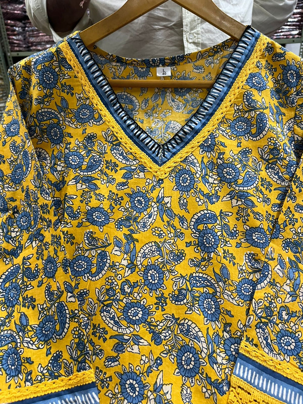 Introducing our newest addition to the summer wardrobe essentials-the Cotton A-line Suit! Crafted with the finest pure cotton fabric pants! S with lace embroidery on neck and pants! Pocket friendly kurti